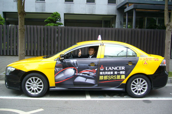 開著Mitsubishi Lancer宣導車輛上路的計程車司機也率先受到Lancer膝部安全氣囊的保護,他笑著說︰「每天在外開車平均都有10個小時以上,有了Lancer膝部安全氣囊的保護真的讓人很安心!」