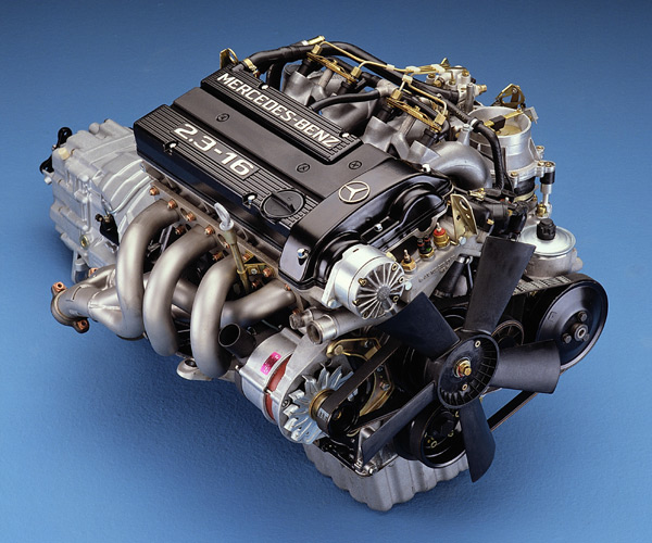 190 E 2.3-16搭載廠編「M 102」的2.3升四缸引擎,具備雙凸輪軸、與16汽門的配置,並擁有185hp最大馬力,然而測試車引擎為了Nardo的極速測試,在噴射系統與點火系統進行了調整。