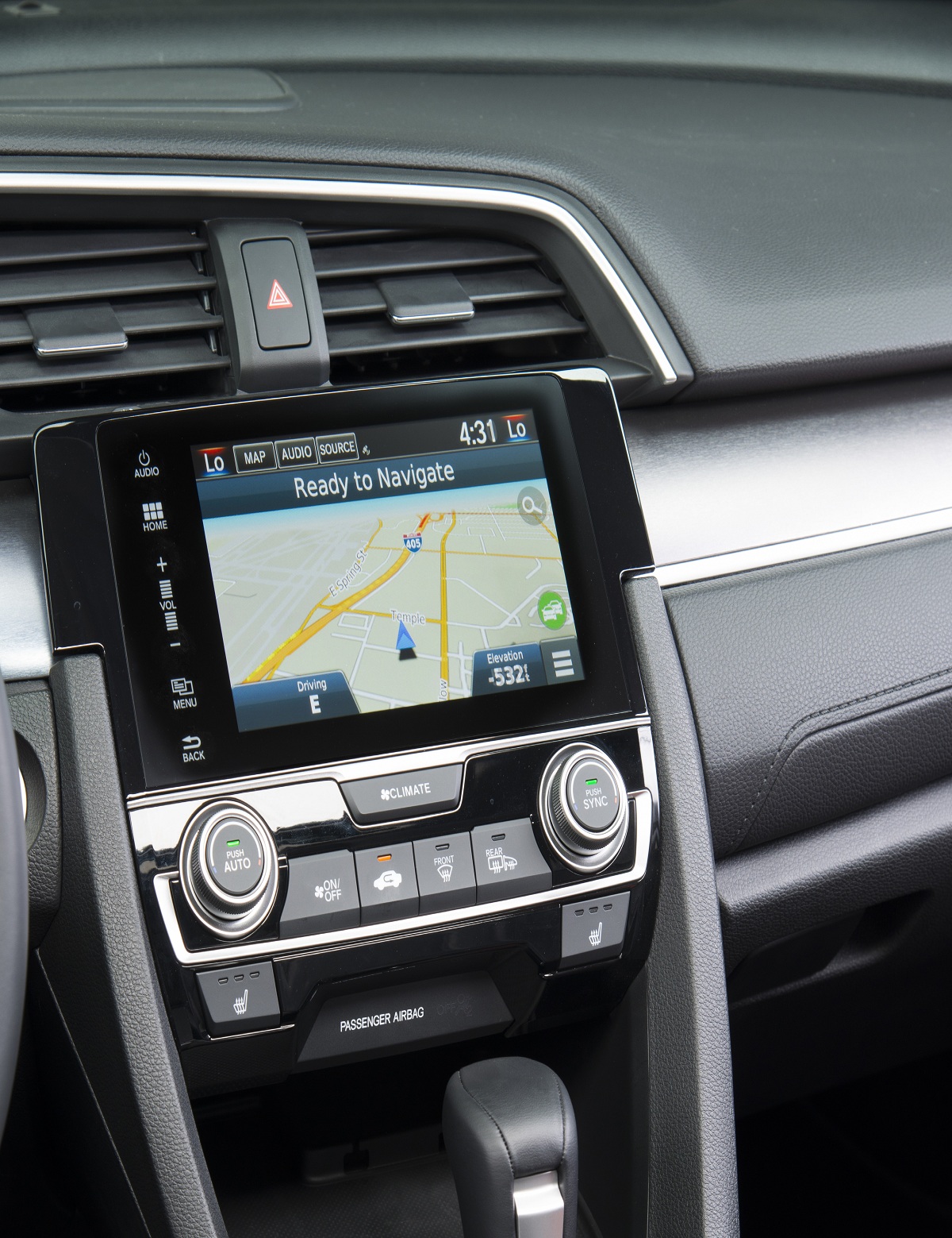 而藉由加大的體型,車內空間也因而受惠,後座膝部空間增加了2英吋(約5cm)。而其他實用配備尚有自動氣候控制雙區恆溫空調、電子手煞車、自動駐車制動保持裝置、無人自動鎖門裝置、7吋全彩TFT中央螢幕(支援Android Auto和Apple CarPlay車用娛樂系統)、LED抬頭顯示器、加熱前後排座椅、加熱側後視鏡、8向電動可調駕駛座椅以及駕駛座14度傾斜可調的腿部支撐…等等。配備這麼豐富,希望不會是部「百萬」喜美呀!。