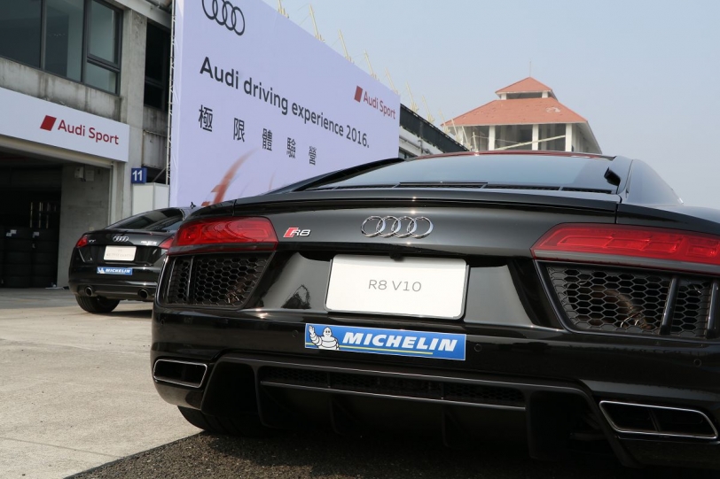 Audi所推出的性能車款可從S、RS、R依序分為三個等級,「S」可看成Sport,則意即運動版車型,在標準版車型上稍為強化而來。至於「RS」車型則可看為「Racing Sport」,在性能層面上比S車系又高出了一個層級,無一車款不有著強悍的性能表現,而Audi原廠更表示,Racing Sport顧名思義,基本上只要將FIA安全規範所需的安全配備裝配上車即可下場參賽。最後的「R」車型也就是位於品牌性能頂端的R8旗艦跑車,全車上上下下無一不漏出濃烈的性能味,其中更是採用最多從賽道中所研發的科技,而值得一提的是,在當天的所有車款當中,僅有R8是搭載自然進氣引擎,在搭配上V10的大排量,成為了當天最為美妙的聲浪。