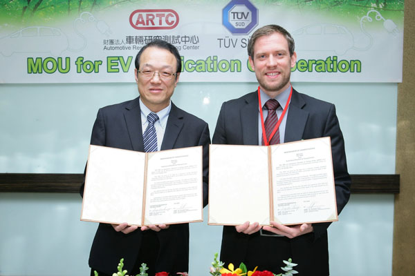 MOU在多位電動車產業代表觀禮下,由車輛中心總經理黃隆洲與TÜV SÜD車輛領域副總裁Alexander Kraus共同簽署。
