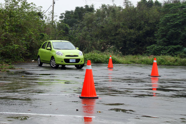 為了展現全新 March的靈巧迴轉半徑,裕隆日產特地在停車場中安排W型繞錐,讓媒體體驗其操控性。