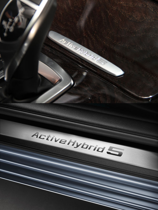 全新ActiveHybrid 5擁有與BMW 5系列相同的絕美設計,不僅展現既運動化又優雅的線條,全新BMW ActiveHybrid 5除可選擇專屬的Bluewater metallic車色以外,在排檔座前的中央鞍座、行李廂蓋右方、C柱、以及車門迎賓踏板上,均印有「ActiveHybrid 5」字樣專屬銘牌,顯露全新BMW ActiveHybrid 5的獨特個性。