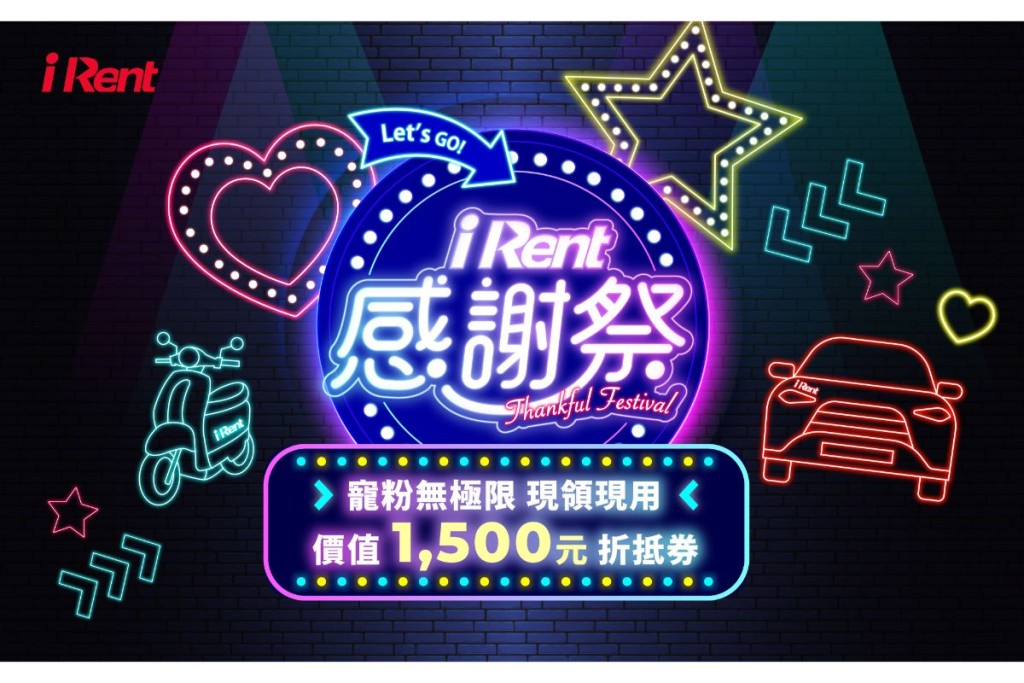 - 「iRent感謝祭」活動官網及折抵券使用相關資訊,請上:https://www.irentcar.com.tw/irentarigato/