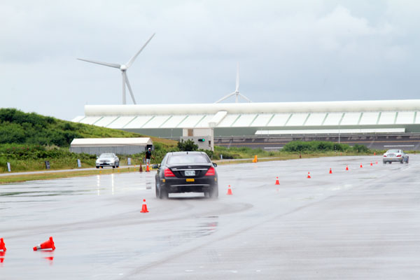 同時在此項目中,教練特地解釋當車輛在ABS系統作動時進行緊急迴避,車輛大多會略呈現轉向不足的現象,其原因同樣是為了確保更高的安全性,若是車輛在進行迴避時,出現轉向過度的現象,將會使得車輛出現難以預期的失控,而且若最後發生碰撞,撞擊點即有可能轉變為車側,對於車內乘客造成較直接的危害,若車輛此時為略呈現轉向不足,駕駛可藉由略為加大方向盤轉動角度盡可能避免碰撞,若不幸還是發生碰撞,撞擊點大多會是在車頭部分,將具有較大的緩衝區,以降低對車艙內乘客的危害;所以即使Mercedes-Benz旗下車款都為後輪傳動設計,但是在安全考量下,還是會藉由電子輔助系統與機械結構設計,讓車輛在進行迴避時,盡可能維持可掌握地車輛動態。