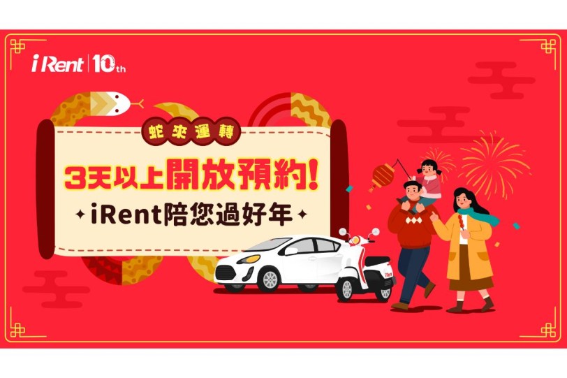 隨著2025年農曆春節9天的連續假期即將到來,為了讓這個與家人、朋友團聚的節日,擁有更便捷及實惠的交通方式,iRent 春節期間24小時營運全天候不打烊,只要透過手機預約隨時皆可取還車。此外,iRent 服務據點遍布全台,無論走春拜年或回娘家,iRent 皆可陪您到達目的地!