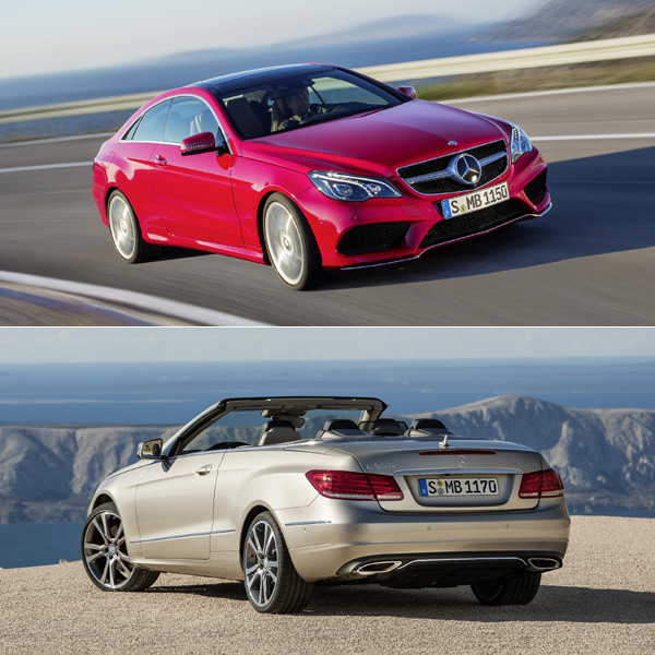 將於NAIAS北美國際車展首演的小改款Mercedes-Benz E-Class Coupe / Cabriolet車型,讓2014年式E-Class家族全員到齊;小改款E-Class Coupe / Cabriolet同樣捨棄了四頭燈、並改以單體頭燈的設計,而與Sedan / Estate車型不同的,就是Coupe / Cabriolet車型仍保留著「浮橋式」的後輪拱設計。