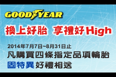 固特異輪胎自2014/12/16起至2015/01/31止,免費提供輪胎健檢,而購買指定品項輪胎,更有精美好禮相送。
