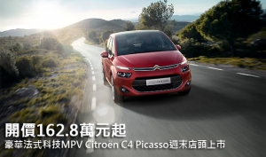 豪華法式七人座Citroën Grand C4 Picasso自去年底上市後,即以絕佳產品優勢獲得台灣消費者肯定,而Citroën總代理 寶嘉聯合更將推出五人座車型 - Citroën C4 Picasso,相同寬敞車室空間結合不同乘坐設定以滿足多元化用車需求,而旗艦規格的高科技頂級配備,充沛動能兼具優異節能表現及繞富樂趣的操駕感受,在在提供消費者無以倫比的行車體驗。Citroën C4 Picasso將於本周末4/25-26假Citroën台北、新北、台中展示中心舉辦店頭發表活動,誠摯邀請蒞臨賞車,體驗Citroën C4 Picasso及Citroën Grand C4 Picasso跨越時代的全新汽車工藝革命。