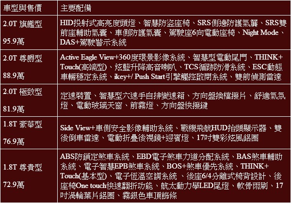 2.0升渦輪增壓引擎可輸出170匹最大馬力,與六速手自排變速箱搭配加速輕盈流暢。