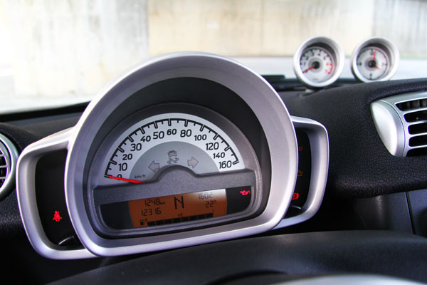 如同外露的車身結構般,車艙內的fortwo lightshine同樣很坦白,濃縮重點的操控功能介面,就算於控台上因升級至Passion車型配備等級而新增了時鐘與轉速兩圓形儀表,內裝控台依舊很簡單,音響系統連CD介面都省略,僅提供AUX-in功能使用,完全新世代生活態度的思維,清楚的告誡抱持八股觀念的購車族群別靠近,不囉嗦,我也挺愛。