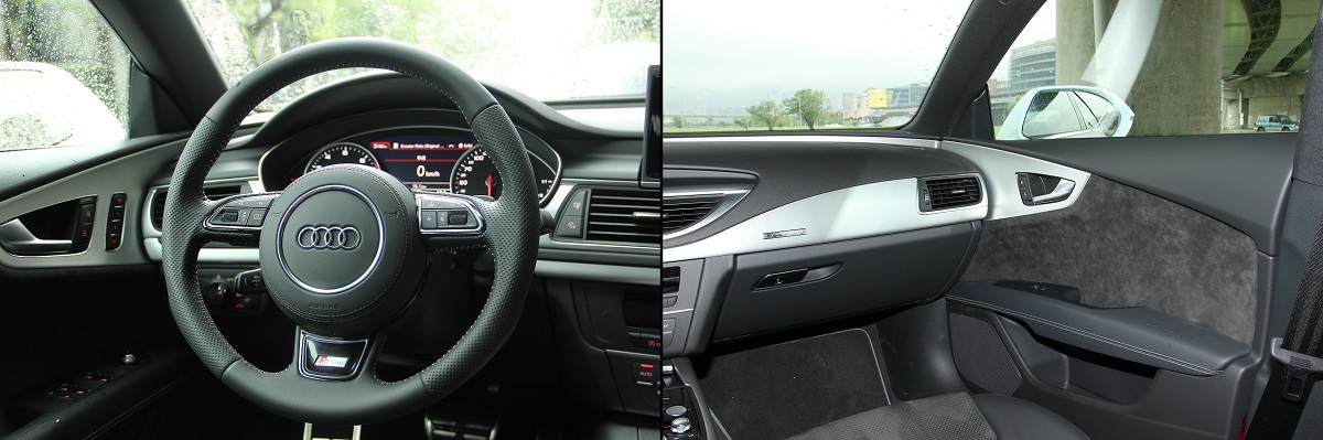 而值得一提的,A7 50 TFSI除了配備了EBD電子煞車力道分配系統、ASR循跡防滑系統以及ESC動態穩定系統之外,更將EDL電子鎖定防滑差速器列為標配,其裝置於後軸上,能在過彎時主動將扭力分配至外側輪,實際的操駕反應:在山路無論是一般九十度左右的彎道或者是髮夾彎,不太容易會有推頭的情形發生,過起彎來會讓人有後輪驅動類似的感受,可以油門帶彎的方式過彎,但由於前輪有動力,非常具有安定感,反而可以比性能相接近的FR車款施以更深的油門。再加上Audi特有的五連桿前懸吊/梯型多連桿後懸吊設計,車頭轉向性非常優異不在話下,而處理坑洞路面的避震效果,其舒適性更是讓人大為驚豔!只要不是「施工級」過大的坑洞,基本上都可以不用刻意閃避。