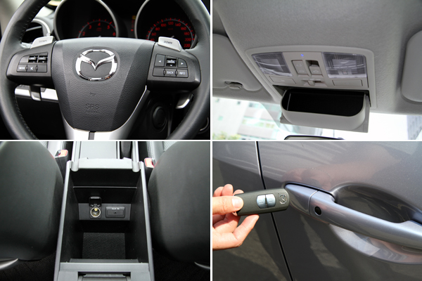 Mazda3 2.5S亦配有Aux-in外接音源、Keyles免鑰匙系統、多功能方向盤與眼鏡盒等配備。
