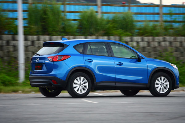 至於在操控性部分,延續了Kuga的試駕感受,Mazda CX-5同樣就像是Mazda3的高底盤化身,有著本次評比車款中最靈活的過彎表現,在較高的速度進彎時,車尾十分活潑,跟進速度最快,外滑的幅度也最為明顯,在以劃定圓方式拍攝時,CX-5是唯一在轉向補油時,車尾會帶出補強車頭轉向的車款,其他車款或多或少都會出現轉向不足、車頭向外推的情形,唯有CX-5幾乎不會出現轉向不足,較小的動力數據,讓它底盤設定強過於動力,所以所提供的樂趣反而也比較多,若是想要一輛好玩的SUV,CX-5是不錯的選擇。