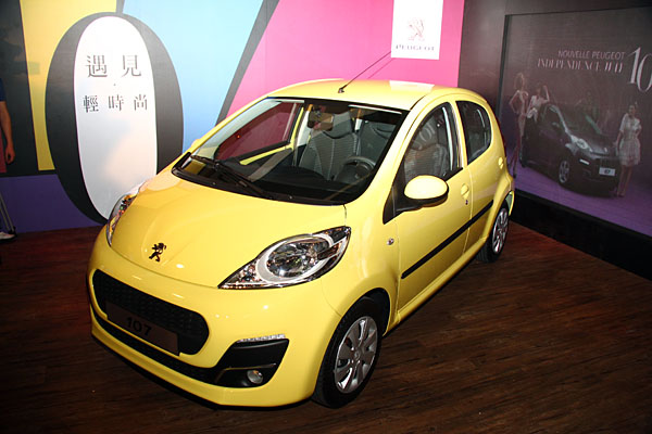 2010年Peugeot台灣總代理寶嘉聯合引進了旗下最迷你的107車系,展現法式輕時尚魅力之餘,更充分展現符合當前環保節能、高經濟性的潮流;而隨著產品時程進化,2012年9月7日寶嘉聯合再度發表全新小改款107,針對外觀、內裝與配備面加以調整,以期增加車系競爭力;價格面也稍做更動,107花都時尚版車價為新台幣59.8萬,107左岸魅力版為61.8萬元,羅浮經典版目前則暫時不提供。