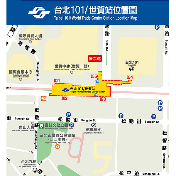 ● 搭乘捷運:隨著捷運信義線開通,民眾可利用信義線搭乘至「台北101 / 世貿站」下車,再由5號出口出站,步行約2分鐘即可到達。