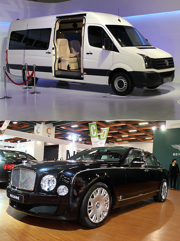 先前CarStuff人車事已為您整理過本屆車展最貴的車單,但除了最貴的車款,「最大」相信也會是另一個有趣的觀點。以一般乘用車來看,最貴與最大的恰恰好落在了同一款車上,也就是Bentley的「路上行宮」Mulsanne。但先別太早下結論,福斯商旅展區車長6940mm、車高2705mm的Crafter行動商務禮賓車,可是遠比車長「僅」5575mm的Mulsanne更為巨大。