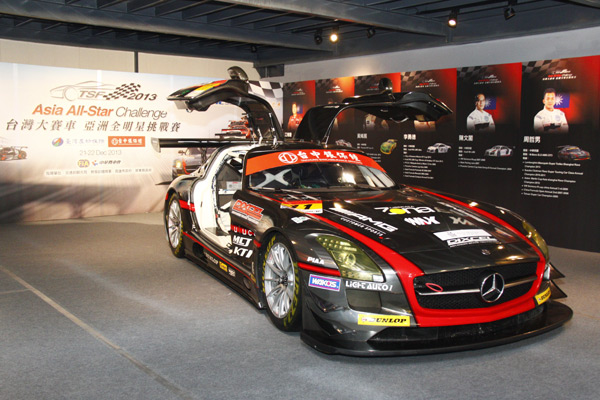備受國內廣大車迷期待的「2013 TSF Asia All-Star Challenge台灣大賽車亞洲全明星挑戰賽」,於12月18日舉辦「把冠軍留在台灣,一起為台灣車手加油」誓師記者會,現場除了參賽的國內外頂尖賽車好手齊聚一堂之外,首度在台灣登場亮相的Mercedes-Benz SLS AMG GT3廠車、與戰力不俗的Ferrari 458 Challenge GT3廠車,更同步現身記者會現場。目前比賽已進入緊鑼密鼓的最後備戰階段,請大家一同為台灣車手加油,誓將把冠軍金盃留在台灣!