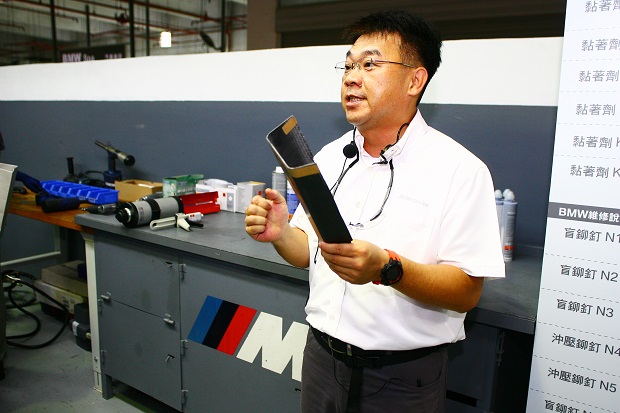 鋁合金車身維修技術:在不破壞強度與堅硬度的前提之下,鋁合金車體無法使用校正、焊接的工法進行維修。BMW早在2003年BMW 5系列(E60)前端輕量化鋁合金車殼(GRAV)上,使用鋁合金特殊黏著劑進行膠合鉚接,此種冷作方式不會因高溫受熱破壞材料本身結構,其接合強度也比電阻點焊、氣體焊接的接合強度更高30%。在研發膠合鉚接技術過程中,BMW也針對防銹進行了詳盡的測試,給予客戶百分之百的安全保障。