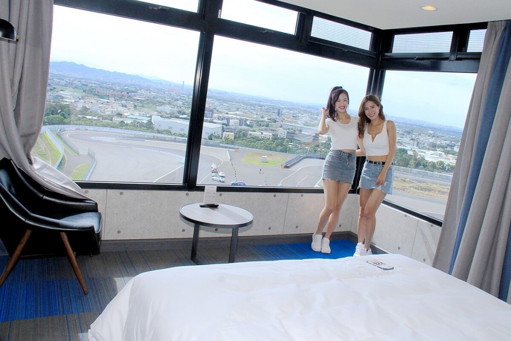 旅店定位風格為打卡旅店,鎖定來賽車場參加賽道活動的車商、車隊的車界人士,整體設計就以「賽車與運動」為主軸,全館230間客房,11種房型,除了入住旅店能近距離觀賞賽道,全景陽台無死角,近半數客房可直接俯瞰G2賽道風光,並且旅館坐落在大直線起始方位,因此呼嘯而過最大音量的引擎聲浪都能完整享聽!另外,旅店內還貼心規劃一系列網美拍照古董裝置,享用能量早餐後,還能美美的打卡紀念。